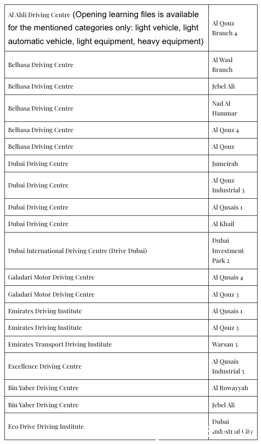 客户可以通过RTA网站或在下面列出的迪拜驾驶机构之一进行申请: