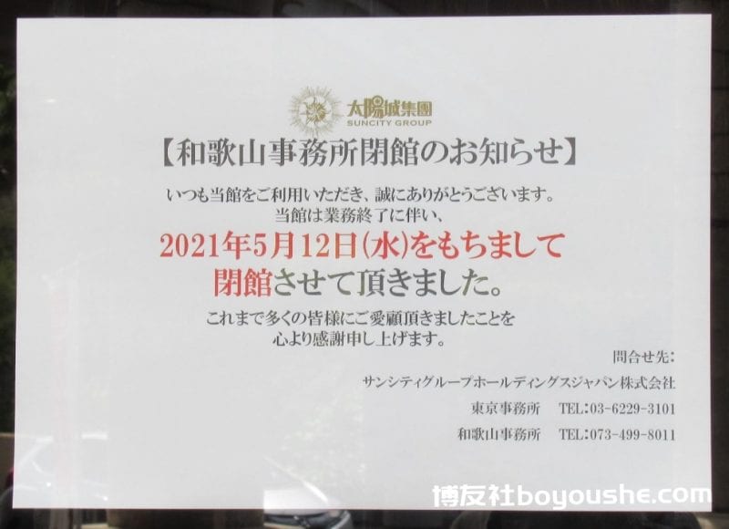 太阳城集团在日本的IR综合度假村的开发计划,宣布全面撤出,这让和歌山当地的游说团体和支持的企业民众相当惊讶。太阳城和歌山事务所也在5月12日关闭。