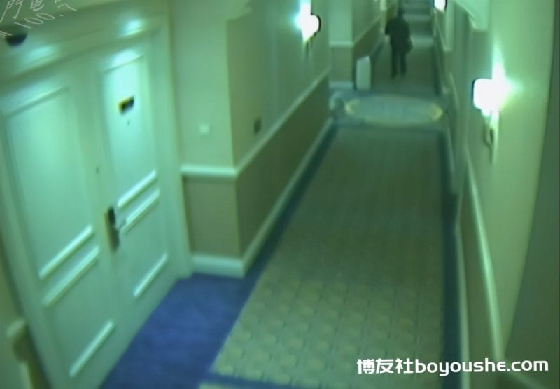 根据酒店走廊的监控发现,案发当日,嫌疑人开门,并与女死者一同进入案发房间,然后直到40分钟后,嫌疑人独自离开案发房间,根据门禁及监控记录,在死者被发现前,再无其他开门入房记录。